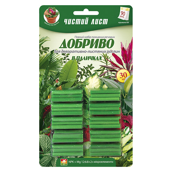 Добрива тривалої дії в паличках «Чистий лист» для декоративно-листяних рослин